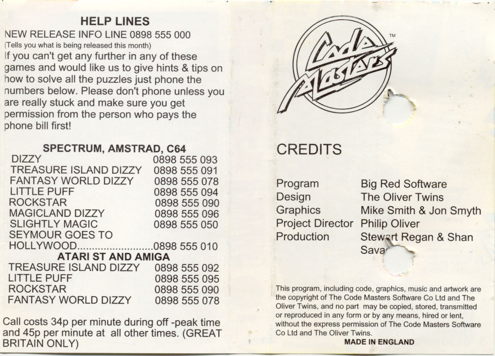 | Publisher: | Code Masters. |